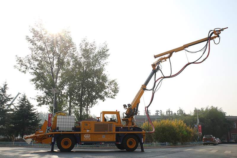 一次駐車最大覆蓋高度17m,最大覆蓋寬度30m,處于國內外相關產品最大行列,適用于國內單、雙線隧道全斷面及臺階法開挖的混凝土噴射支護作業