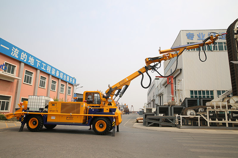 混凝土濕噴臺車是一種將預拌好的混凝土高速噴射到受噴面,經快速凝結形成混凝土支護層的專用設備。 隨著施工單位對混凝土噴射效率、質量以及工作環境的要求不斷提高,混凝土濕噴臺車的功能性得到了普遍 認可,目前已廣泛應用于隧道、煤炭、鐵路、以及水利等多個領域。